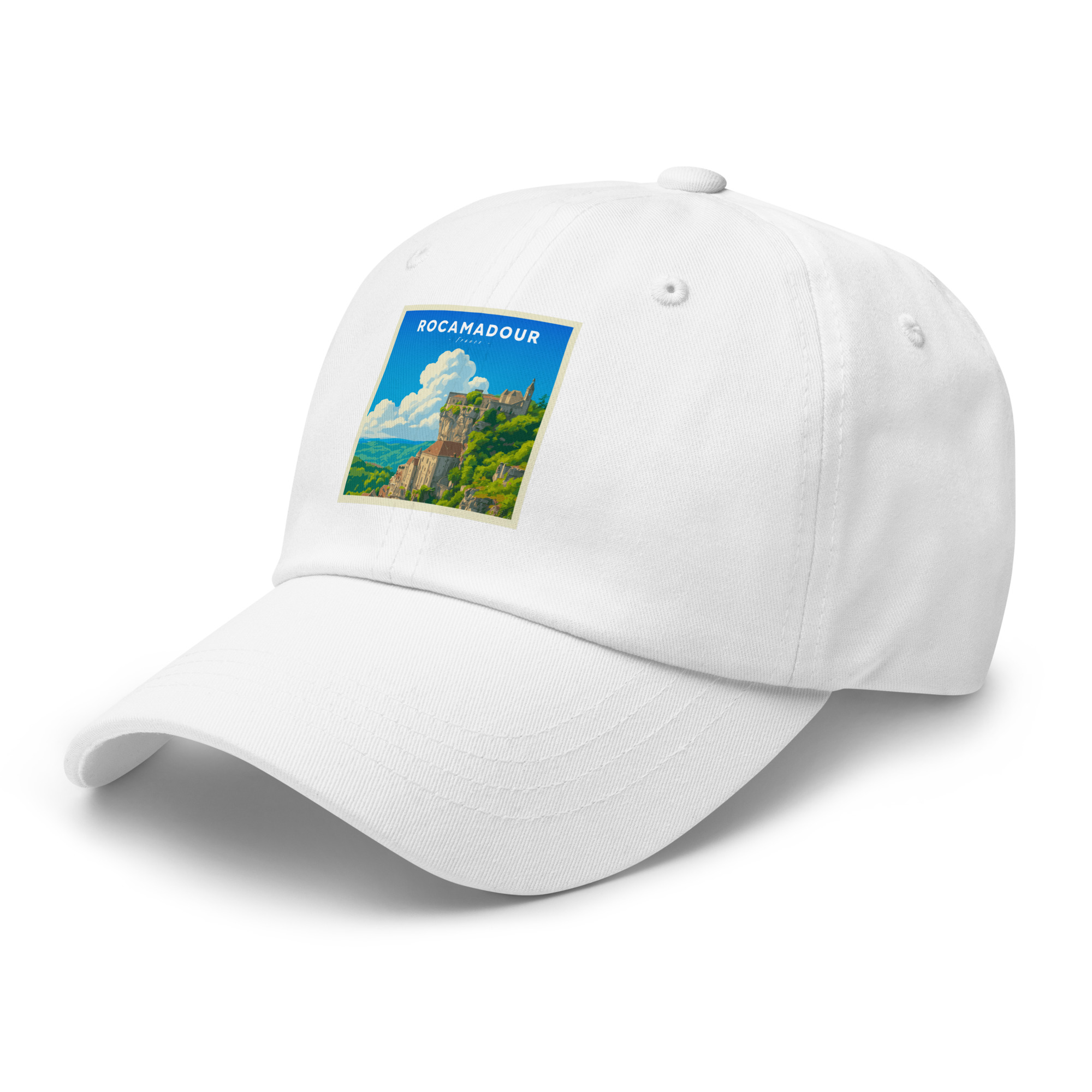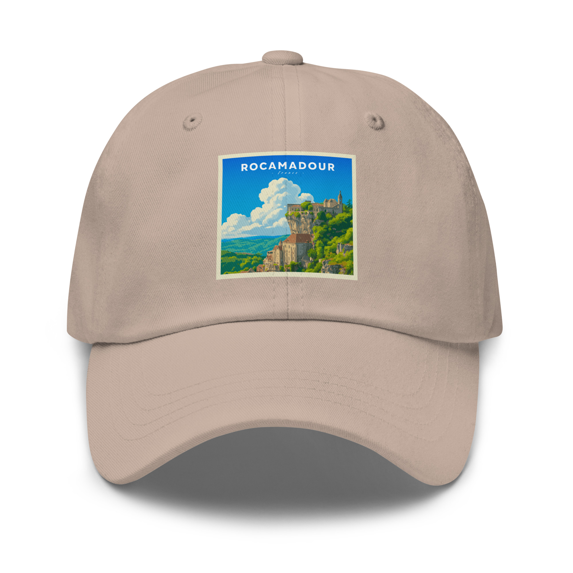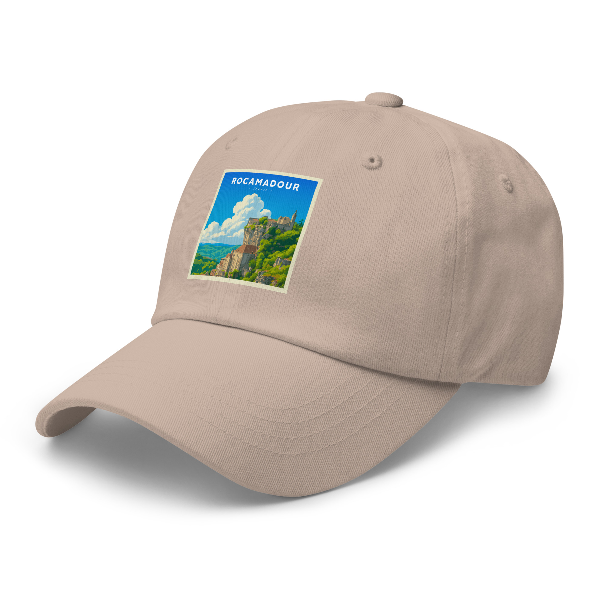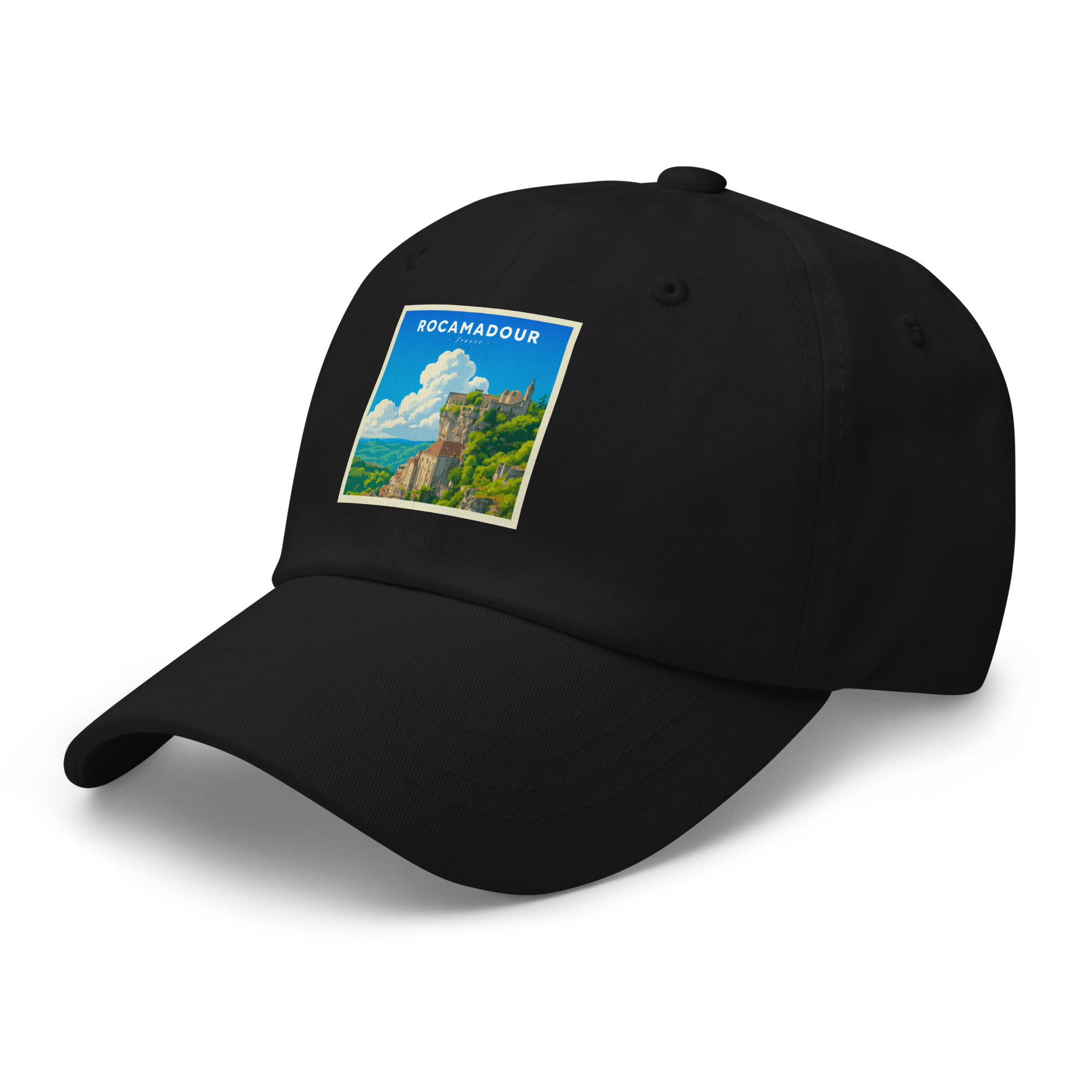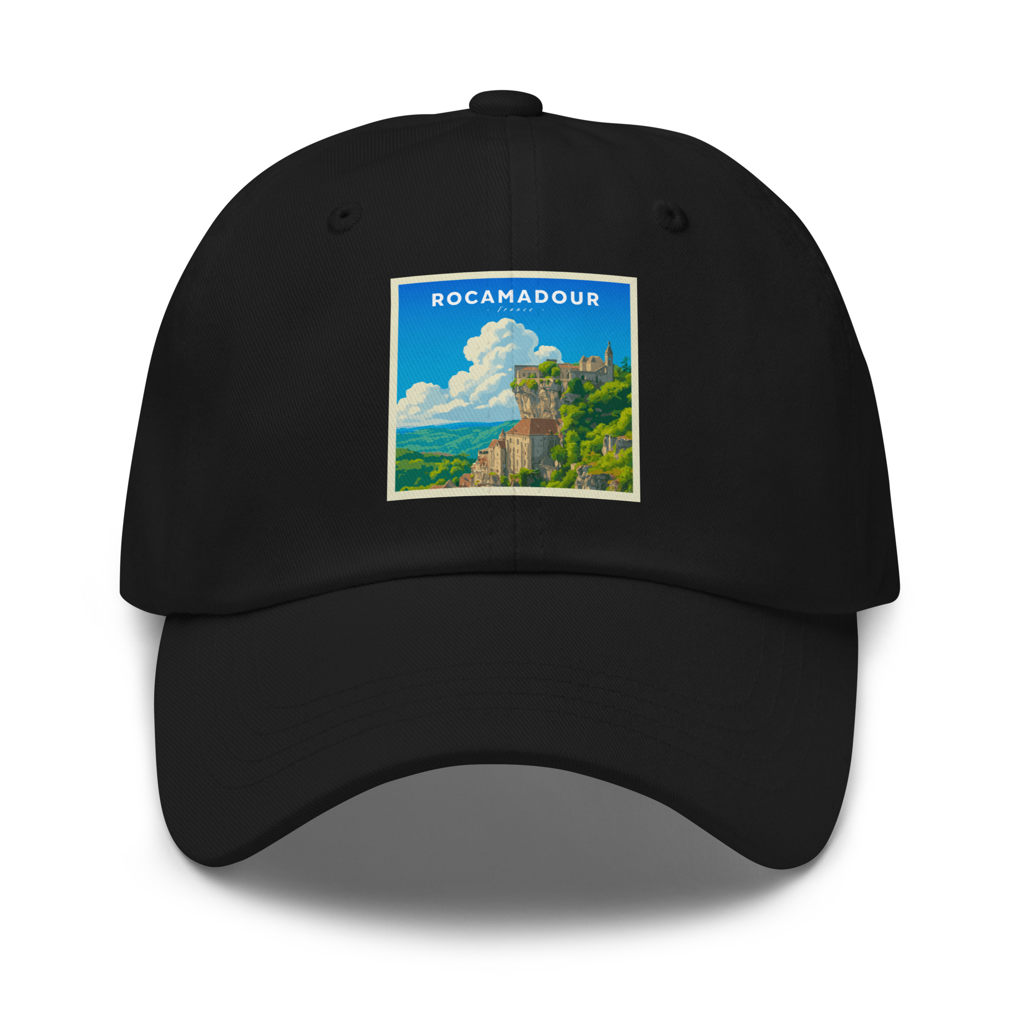 Ce visuel capture toute la majesté de Rocamadour, perché sur sa falaise surplombant la vallée de l’Alzou. Son style graphique, inspiré des affiches vintage, met en lumière l’un des plus beaux villages du Lot et d’Occitanie, entre nature préservée et patrimoine médiéval.