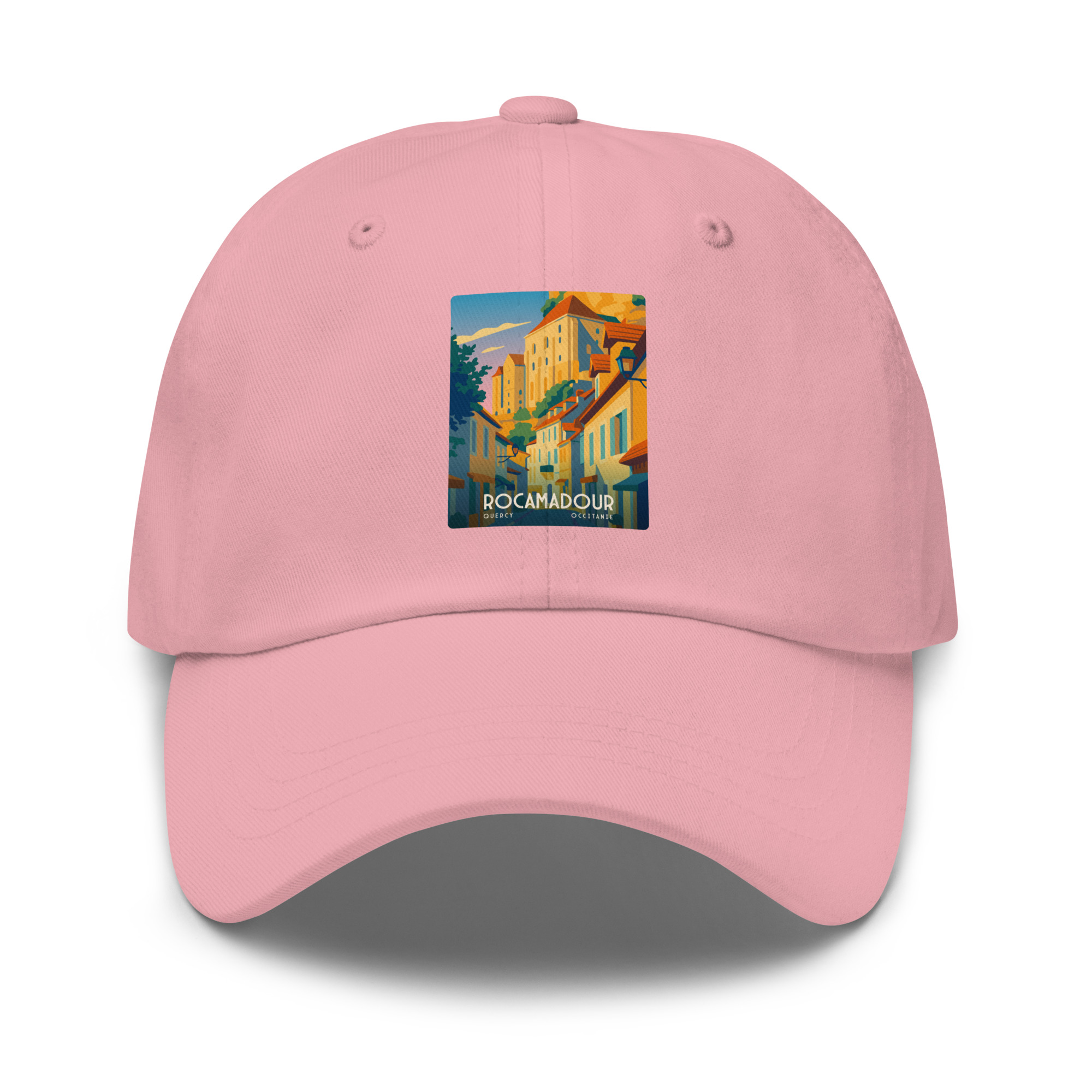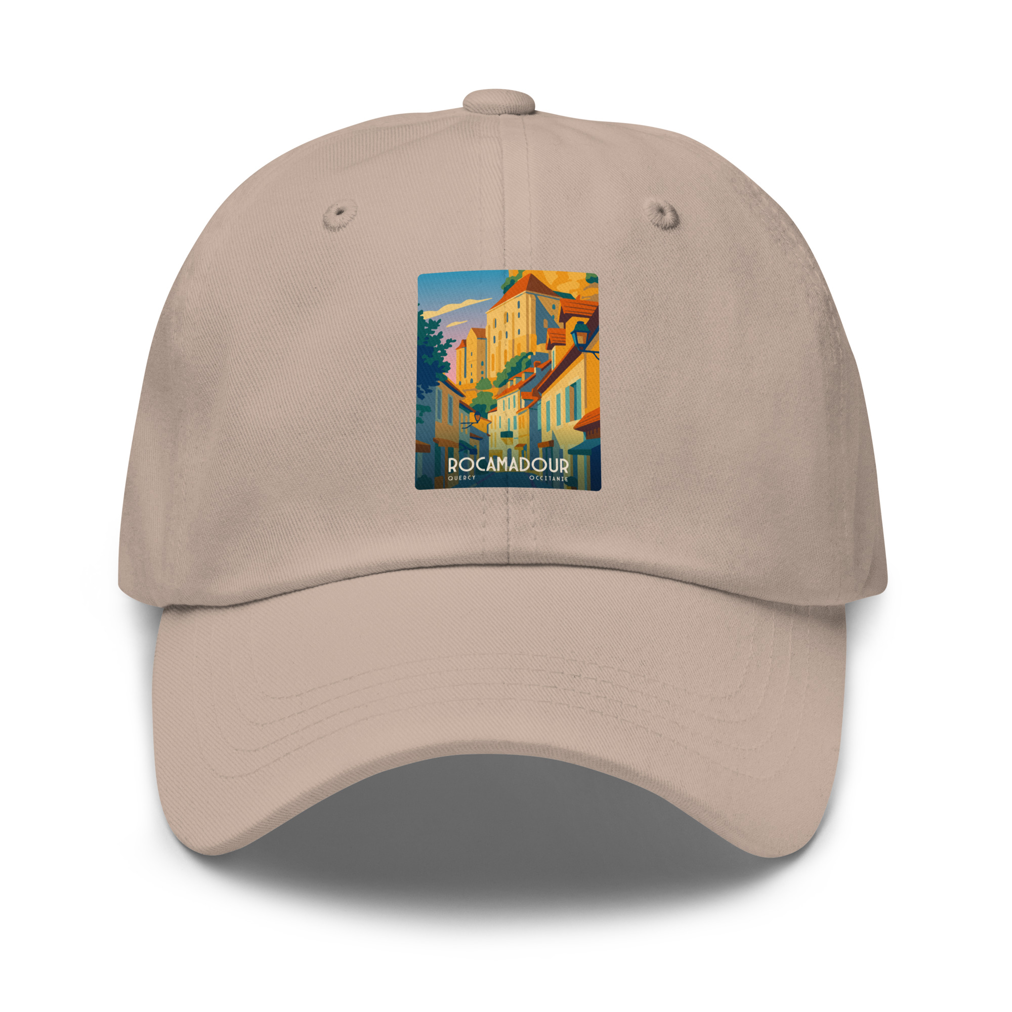 Ce visuel capture l’atmosphère ensoleillée des ruelles de Rocamadour, au cœur du Quercy. Les façades dorées et les toits ocres reflètent la chaleur du Sud-Ouest, tandis que la lumière du soir sublime les pierres typiques du Lot.