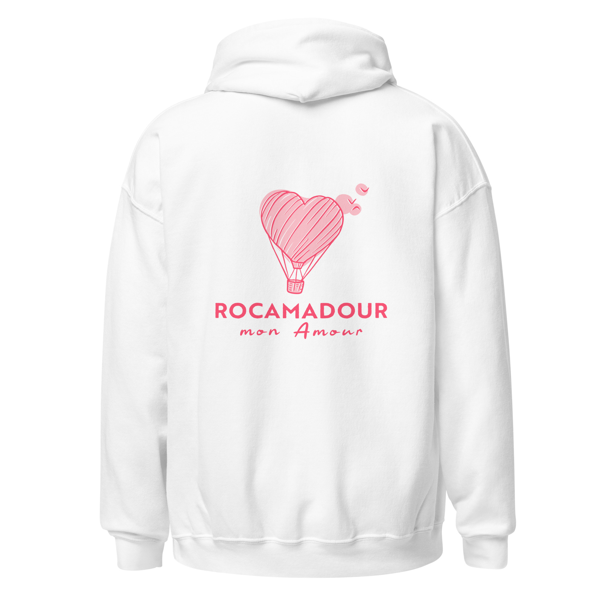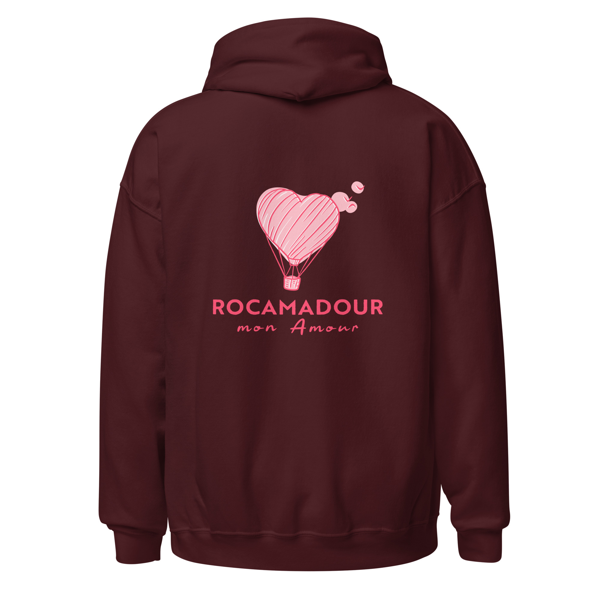 Ce visuel associe la montgolfière emblématique de Rocamadour à un cœur stylisé, symbole d’affection et de douceur. Il évoque les célèbres Montgolfiades et la magie du Lot, où le ciel et les falaises se rejoignent dans un paysage unique du Sud-Ouest.