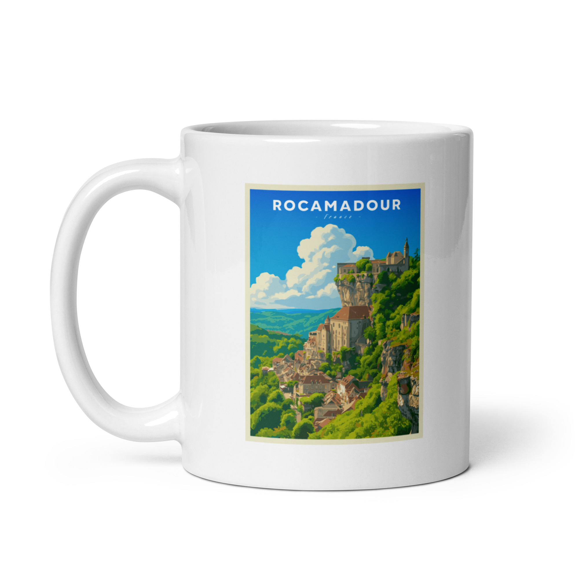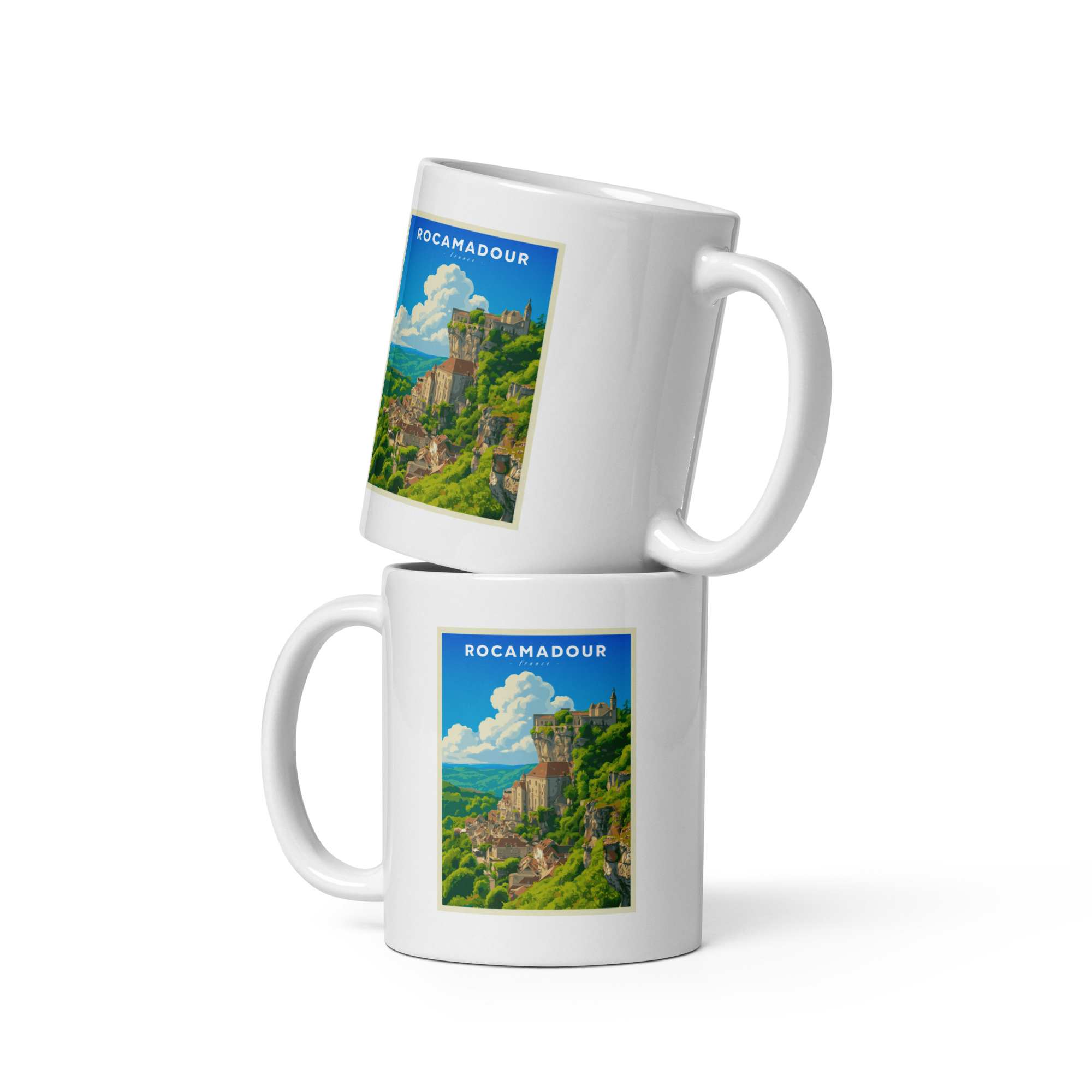 Ce visuel capture toute la majesté de Rocamadour, perché sur sa falaise surplombant la vallée de l’Alzou. Son style graphique, inspiré des affiches vintage, met en lumière l’un des plus beaux villages du Lot et d’Occitanie, entre nature préservée et patrimoine médiéval.