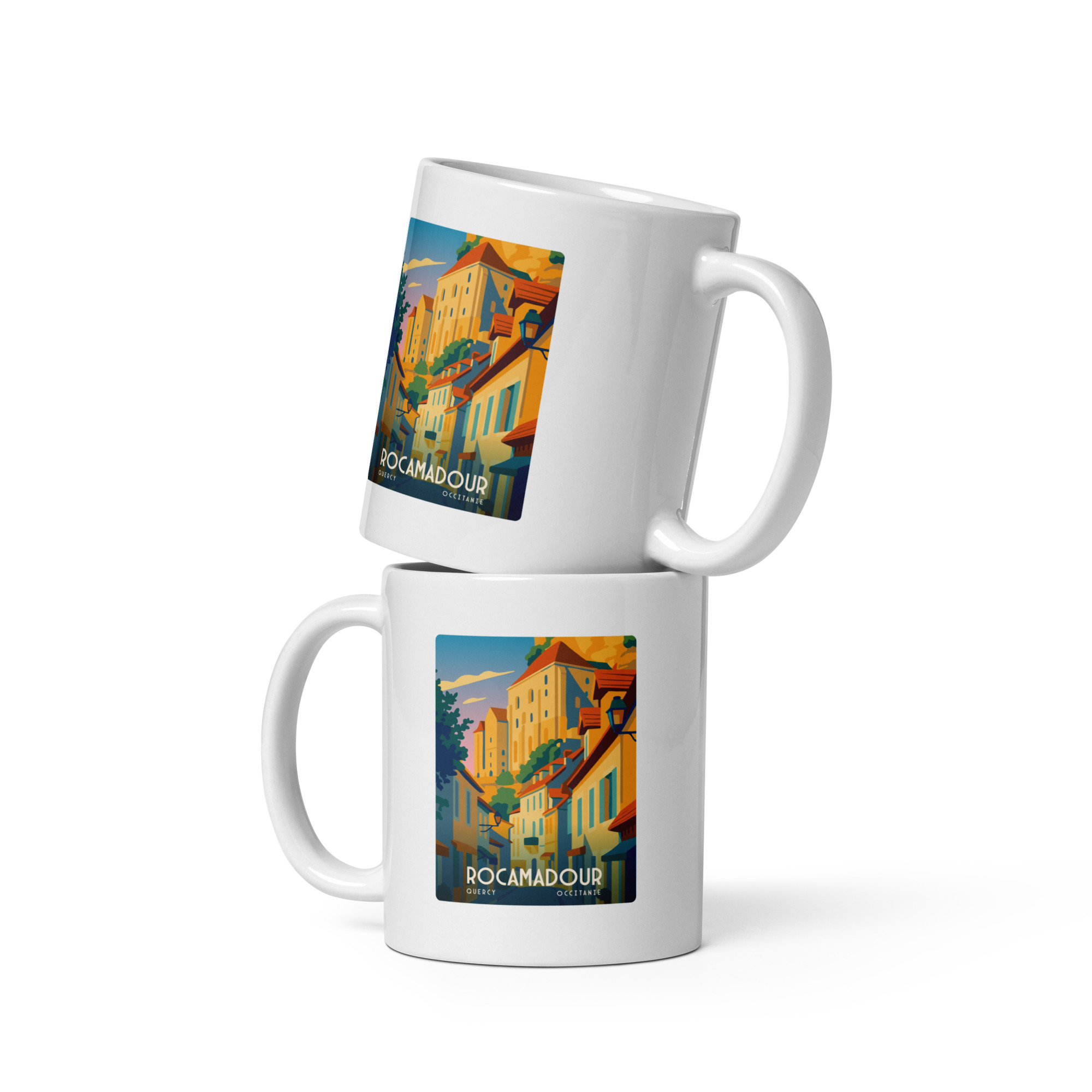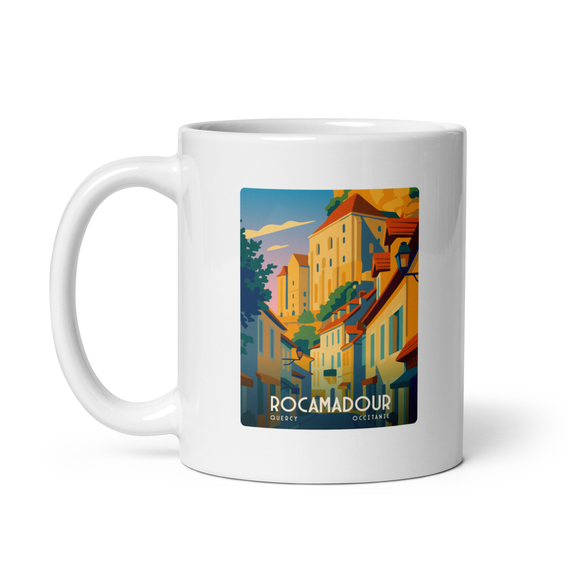 Ce visuel capture l’atmosphère ensoleillée des ruelles de Rocamadour, au cœur du Quercy. Les façades dorées et les toits ocres reflètent la chaleur du Sud-Ouest, tandis que la lumière du soir sublime les pierres typiques du Lot.