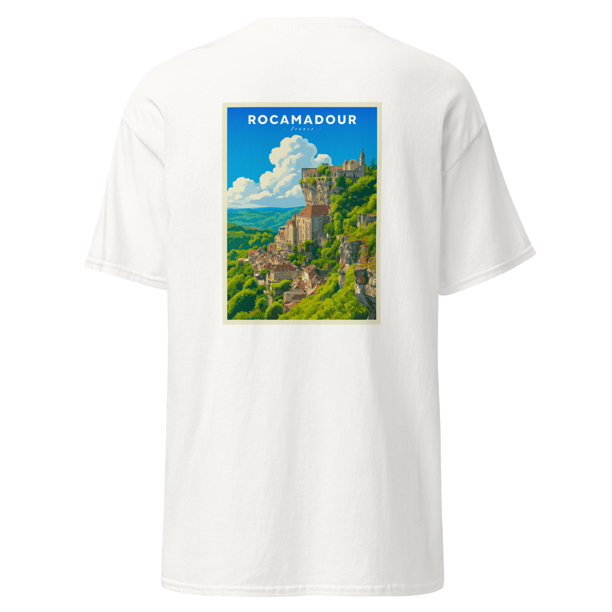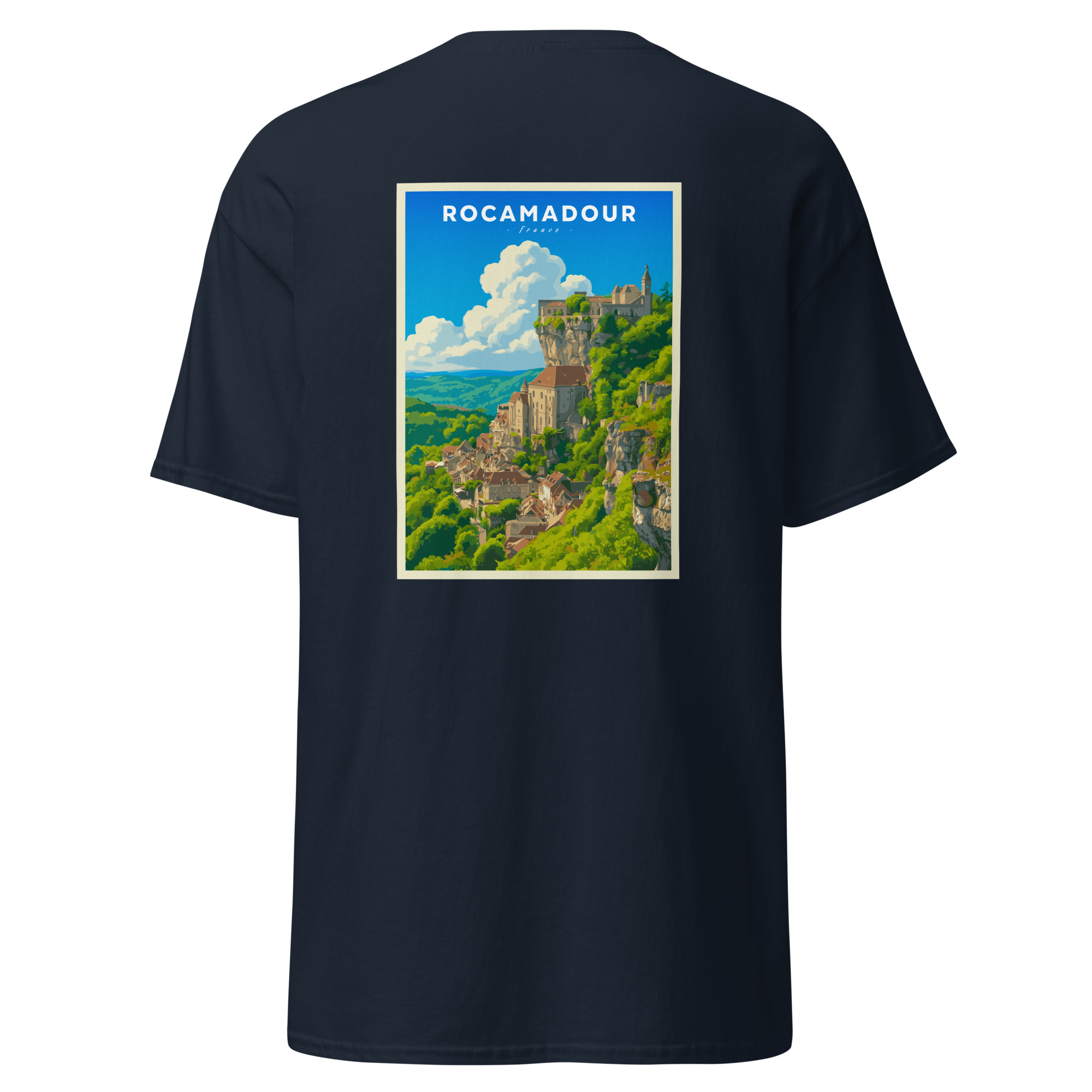 Ce visuel capture toute la majesté de Rocamadour, perché sur sa falaise surplombant la vallée de l’Alzou. Son style graphique, inspiré des affiches vintage, met en lumière l’un des plus beaux villages du Lot et d’Occitanie, entre nature préservée et patrimoine médiéval.
